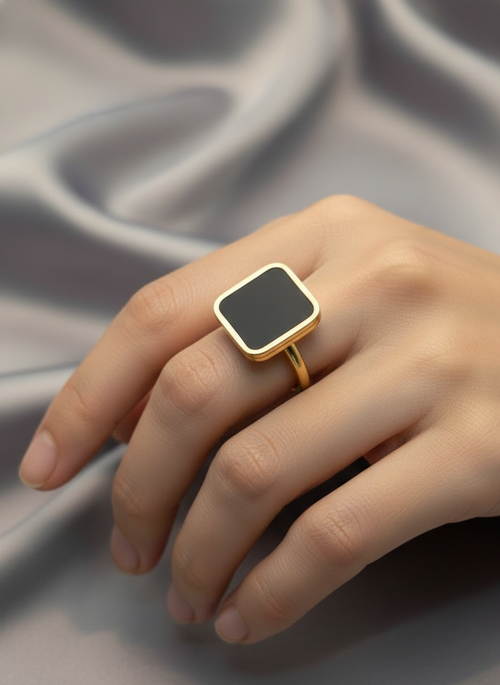 Rectangular Onyx-Style Solitaire Ring -